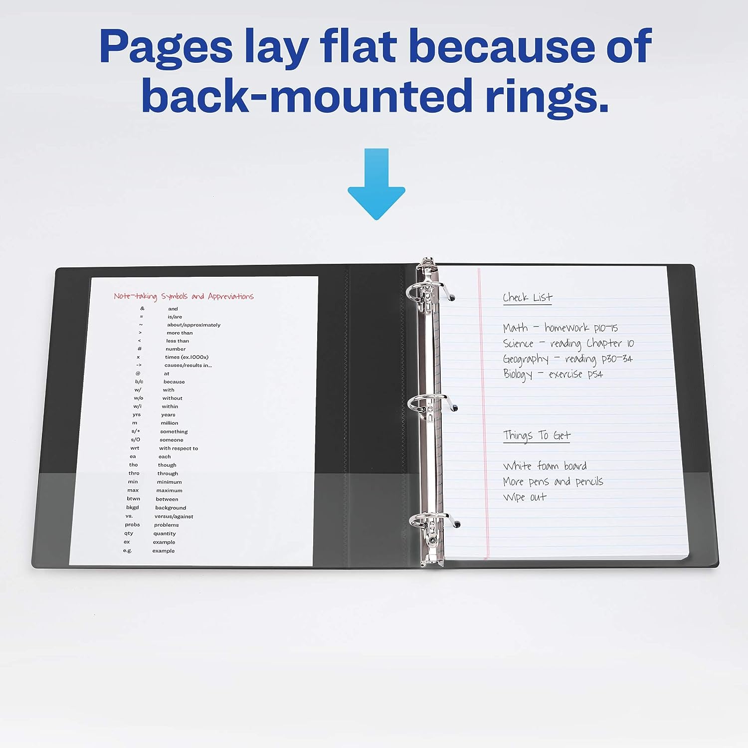 - Important documents and presentation materials stay flat like they’re supposed to because slant rings are mounted on the rear binder panel instead of on the spine